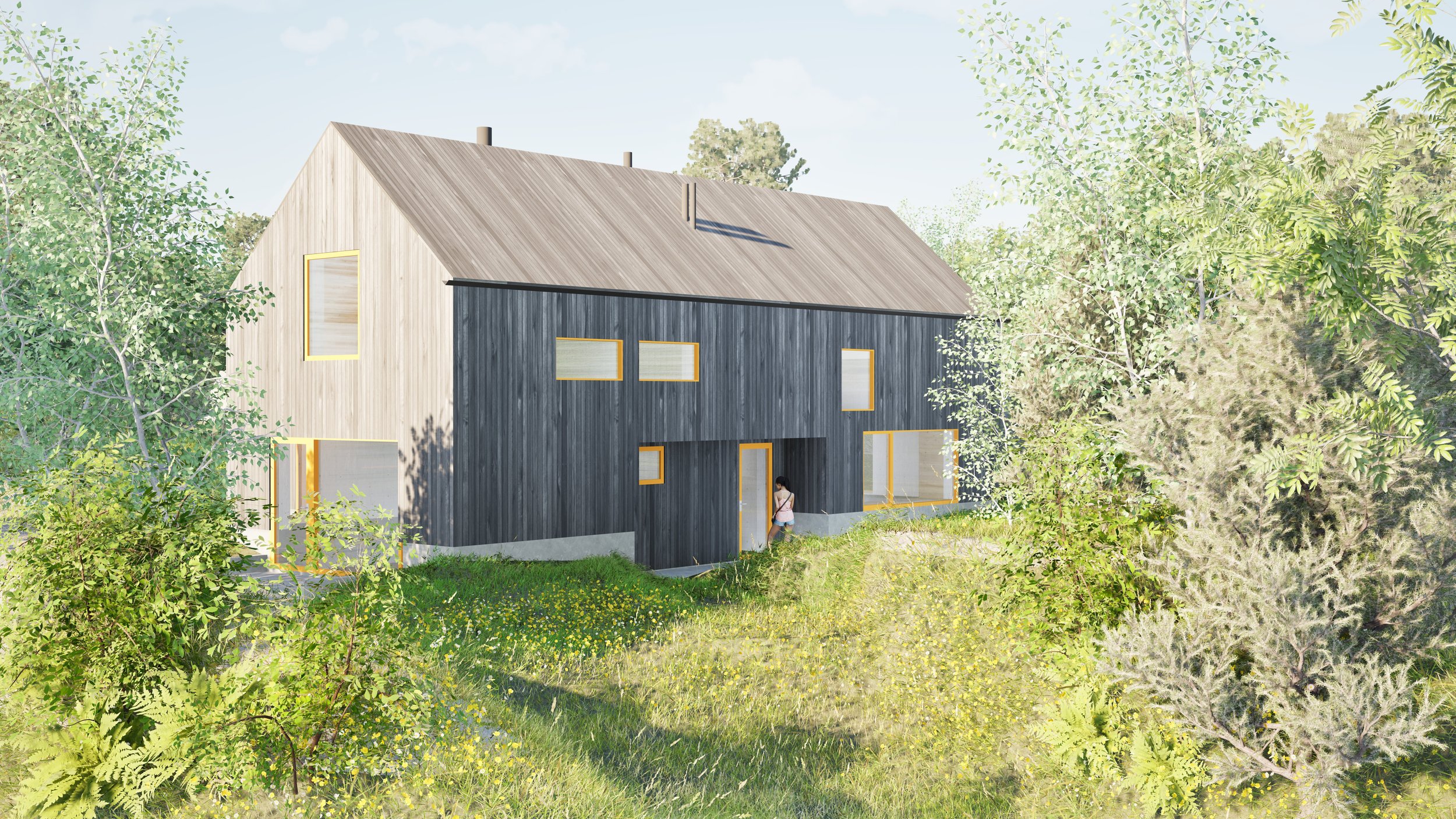 Ny enebolig med drivhus.